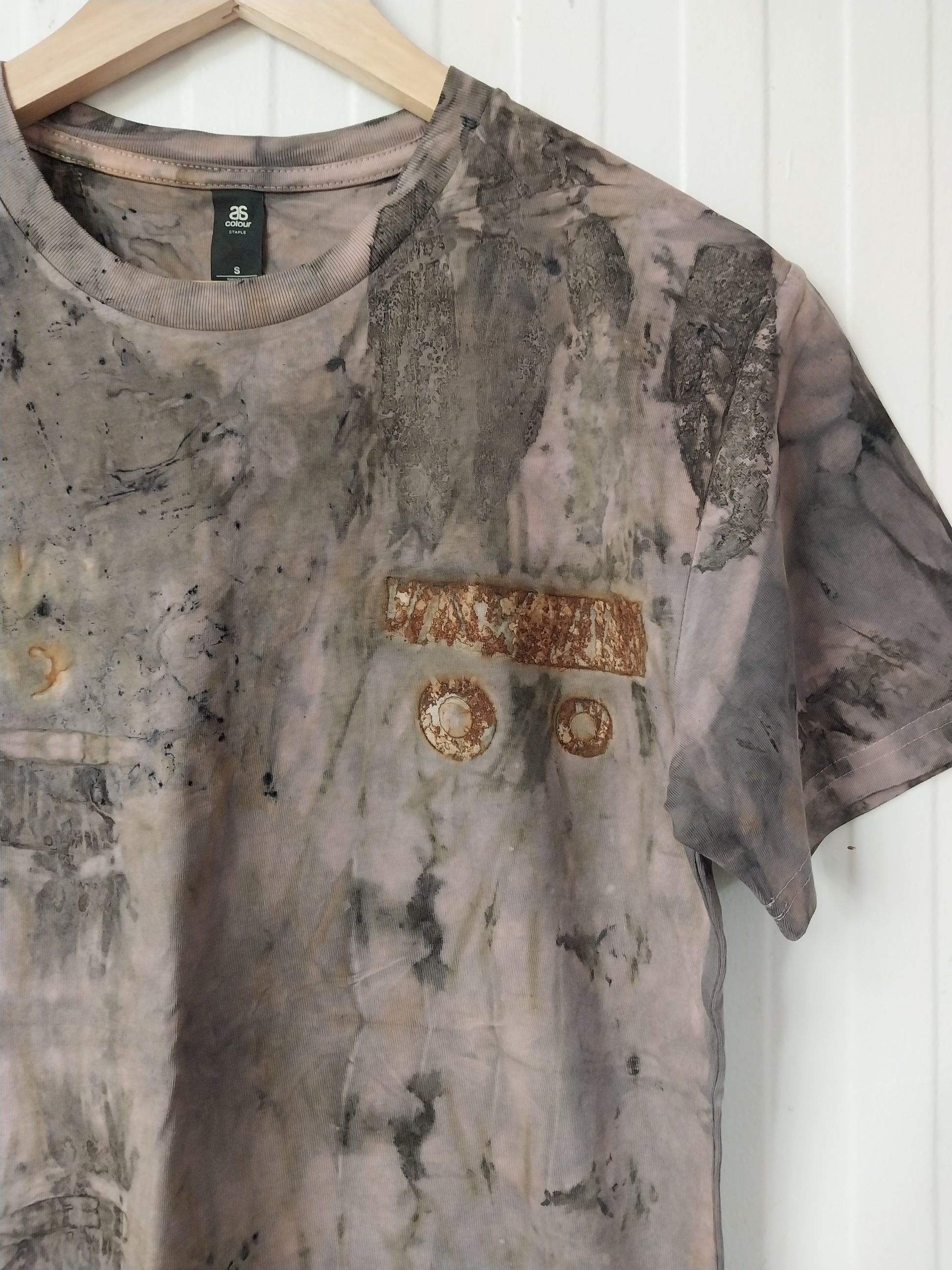 Hand dyed in the remote north of Australia using native plants, dyes and rusty car parts collected from some of the most remote car graveyards, this shirt is a one-off wearable piece of art. We only use high quality pre-shrunk AS color 180gsm shirts. All shirts are unisex and suitable for all climates.