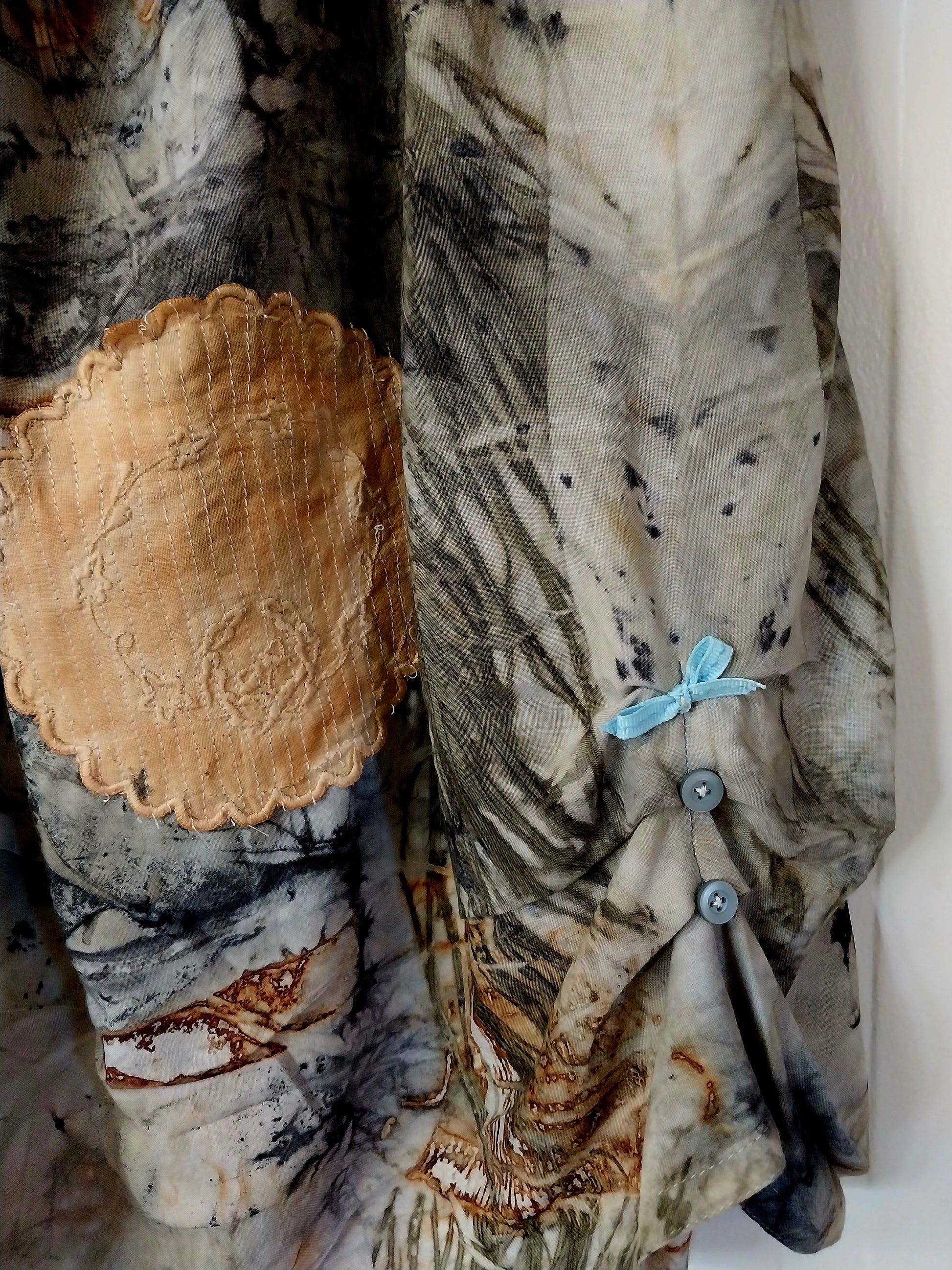This beautiful hand dyed rayon skirt is a must have. Every skirt is hand dyed with Australian native plants and rusty car parts from the far north of Australia and then hand detailed with cute buttons and ribbons. Cool (literally) and easy to wear with big pockets these are a must have wardrobe item for summer, and a great layering piece for the cooler climates. Each Northern Hustler is a one-of-a-kind wearable piece of art with its own unique catalogue number.