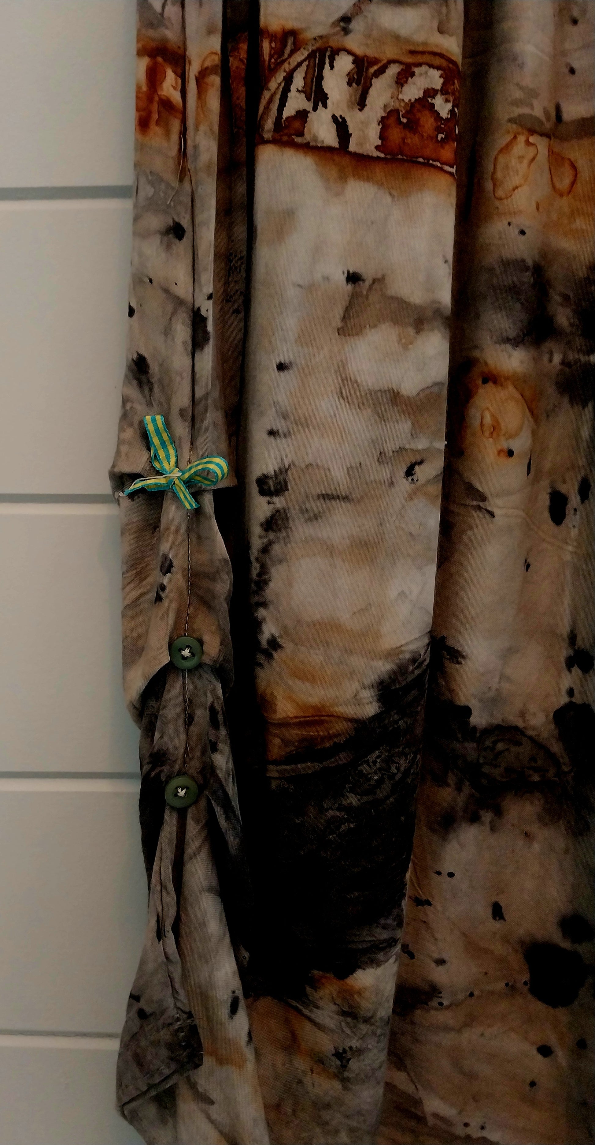 This beautiful hand dyed rayon skirt is a must have. Every skirt is hand dyed with Australian native plants and rusty car parts from the far north of Australia and then hand detailed with cute buttons and ribbons. Cool (literally) and easy to wear with big pockets these are a must have wardrobe item for summer, and a great layering piece for the cooler climates. Each Northern Hustler is a one-of-a-kind wearable piece of art with its own unique catalogue number.