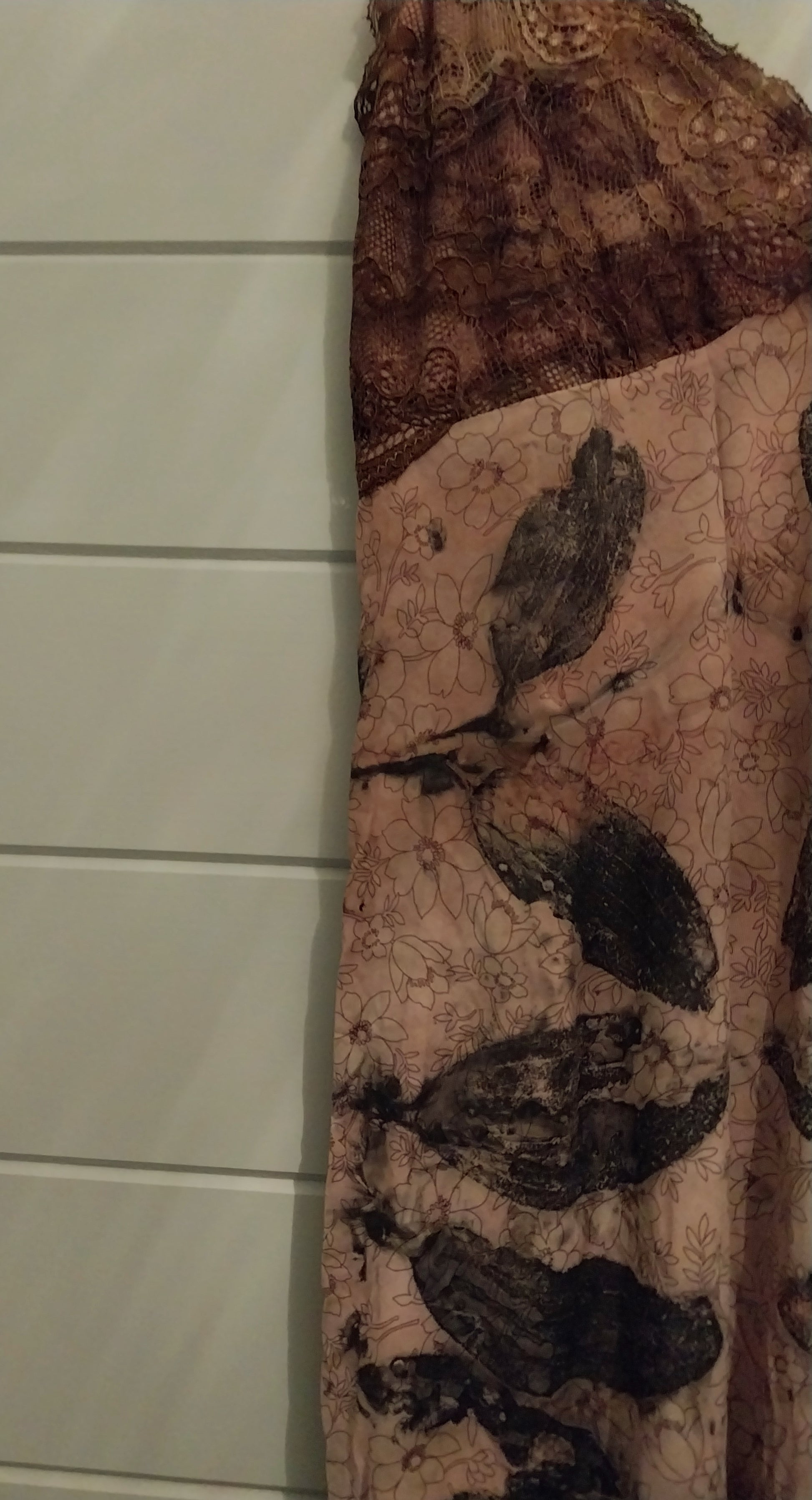 This isn't just a slip dress—it's a provocation. Hand-dyed with Australian native plants and salvaged car parts, each piece emerges as an unrepeatable object, a collision of natural pigment and industrial memory. Vintage lace traces the body with deliberate sensuality. Wear it to blur the line between fashion and fine art, between summer ease and calculated edge. One of a kind. Unapologetic.