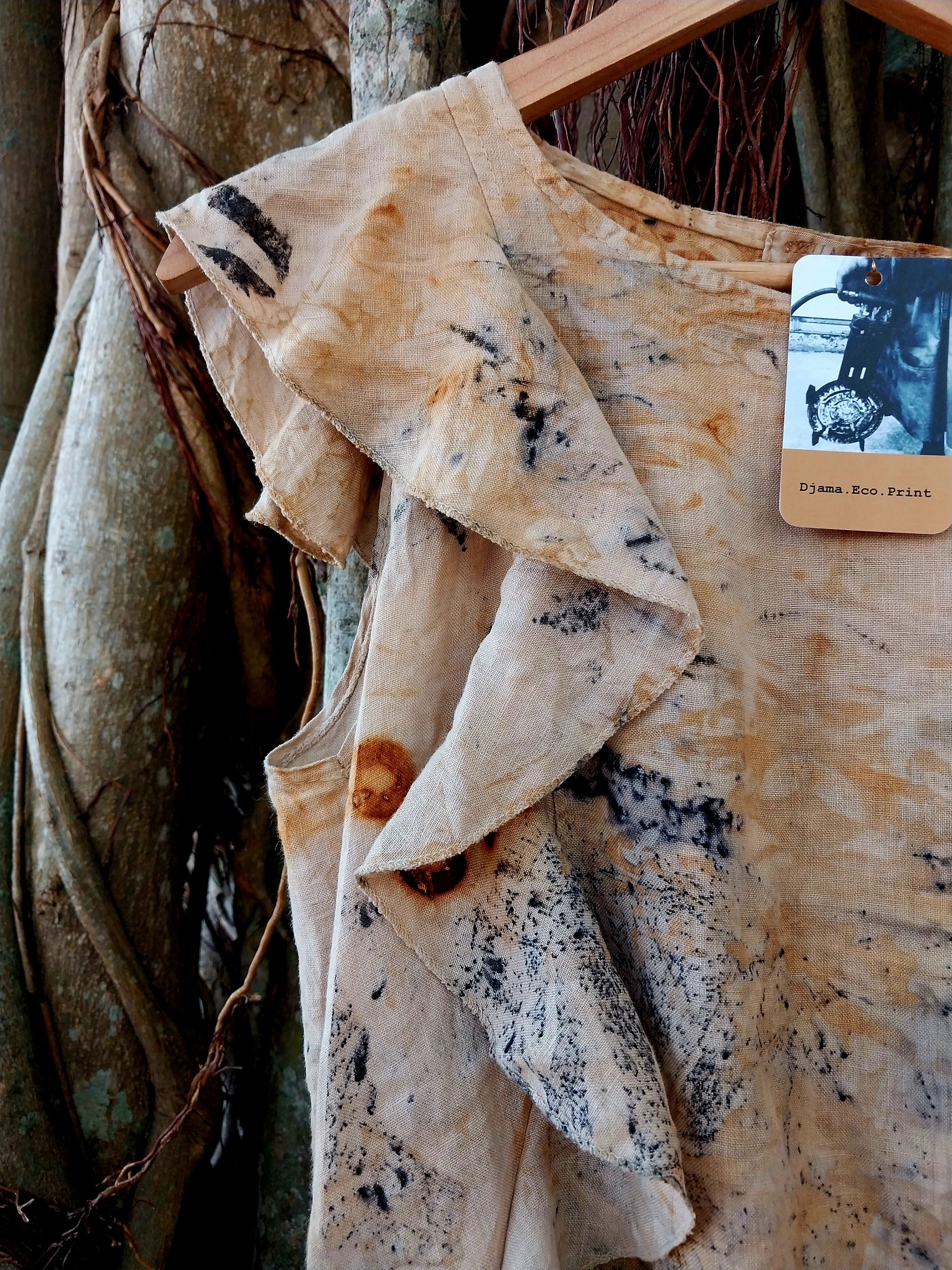Cute pre-loved blouse, a unique, one-of-a-kind piece made from pre-loved fabrics featuring exclusive eco prints. Celebrate your individuality while reducing environmental impact, wearing a blouse that tells a story and sets you apart with effortless style. Choose conscious fashion without compromising on beauty and quality.